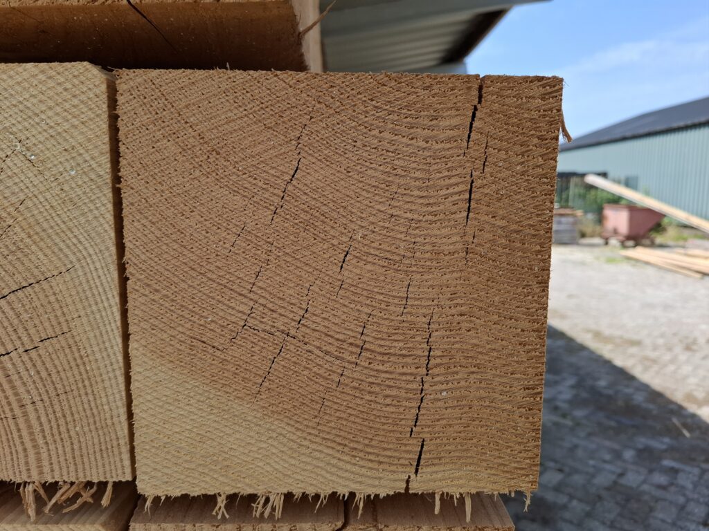 Door het drogen en inkrimpen van het hout kan het zijn dat er maatverschillen ontstaan in het hout. Het moment van zagen (vochtig of droog seizoen) heeft ook invloed op. Bij douglas kan het zo zijn dat een 150x150mm van 500cm een andere kopmaat heeft dan een 150×150 van 400cm als een van de twee balken al langer in de stelling ligt te drogen. Maatverschillen tot +- 10mm zijn dan in de extremere gevallen mogelijk.